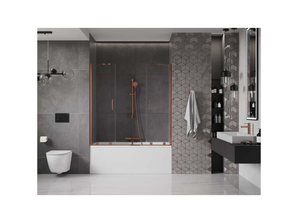 Mexen Velar Duo 2-krídlová posuvná vaňová zástena 160 x 150 cm, transparentná, ružové zlato - 896-160-000-02-60