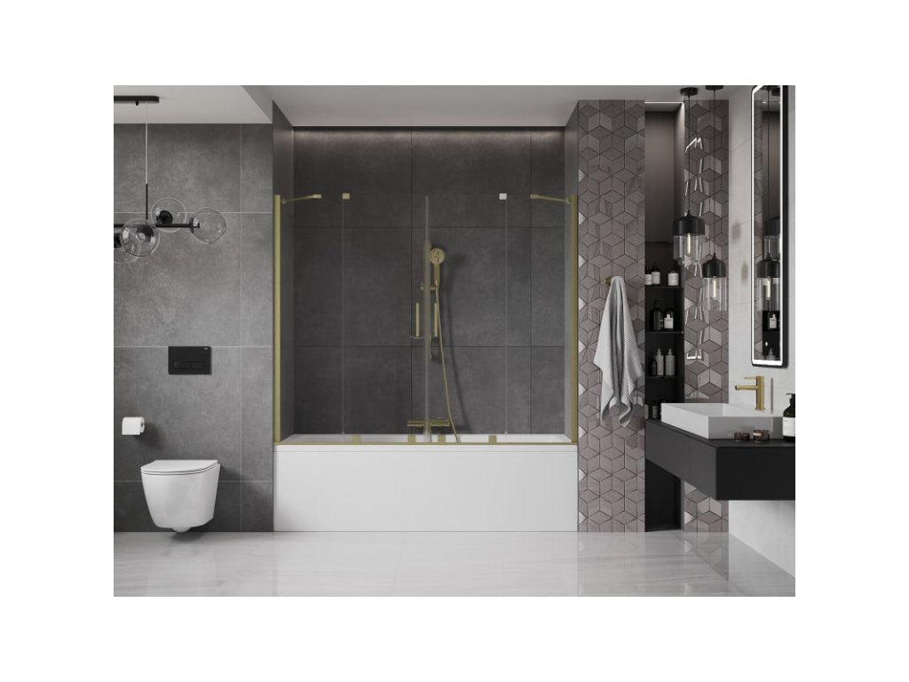 Mexen Velar Duo 2-krídlová posuvná vaňová zástena 170 x 150 cm, transparentná, brúsené zlato - 896-170-000-02-55