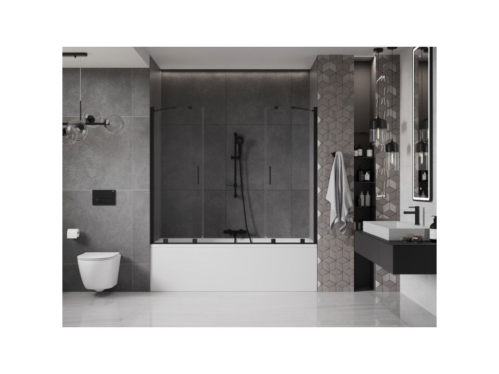 Mexen Velar Duo 2-krídlová posuvná vaňová zástena 190 x 150 cm, transparentná, čierna - 896-190-000-02-70