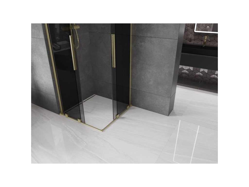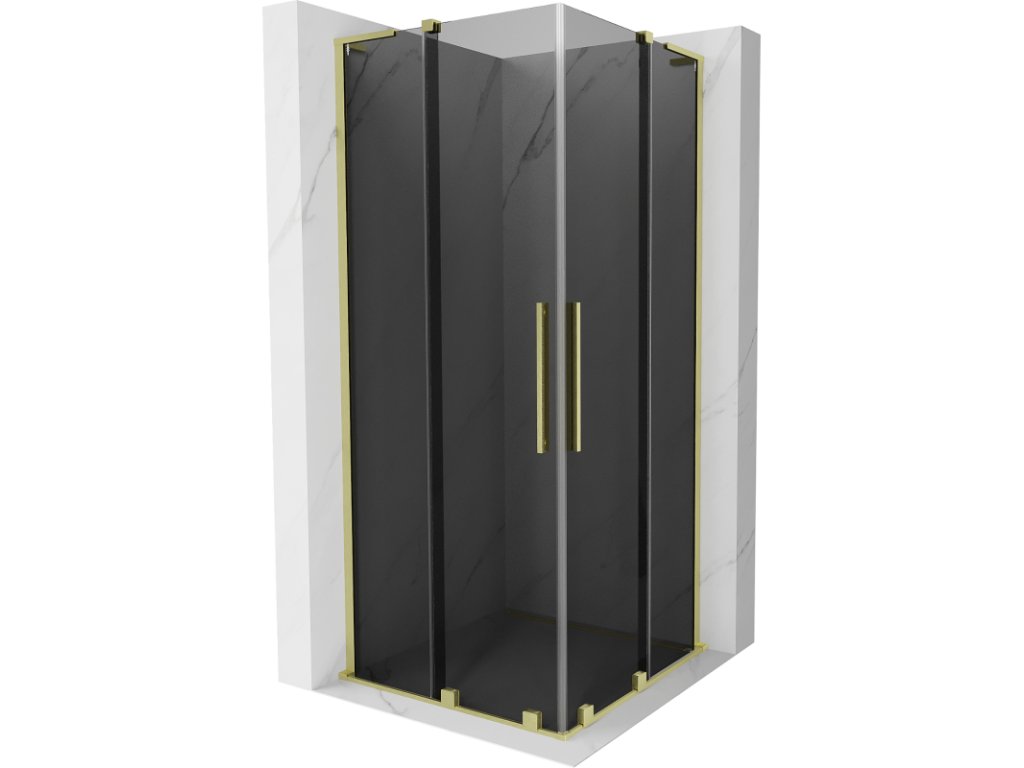 Mexen Velar L Duo posuvný sprchový kút 100 x 100 cm, grafit, zlatý kartáč - 871-100-100-02-43-55