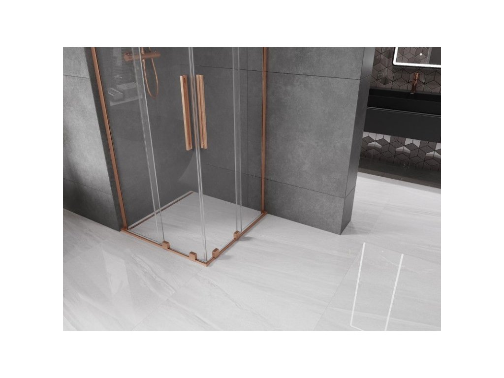 Mexen Velar L Duo posuvný sprchový kút 100 x 100 cm, transparentný, brúsená meď - 871-100-100-02-03-65