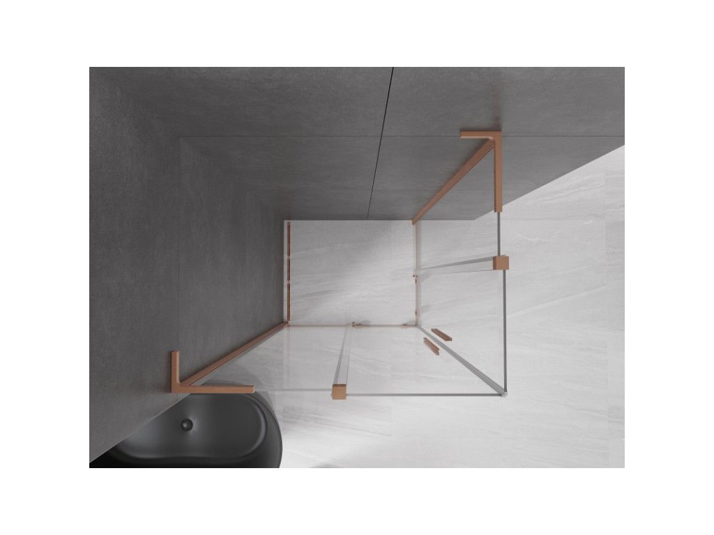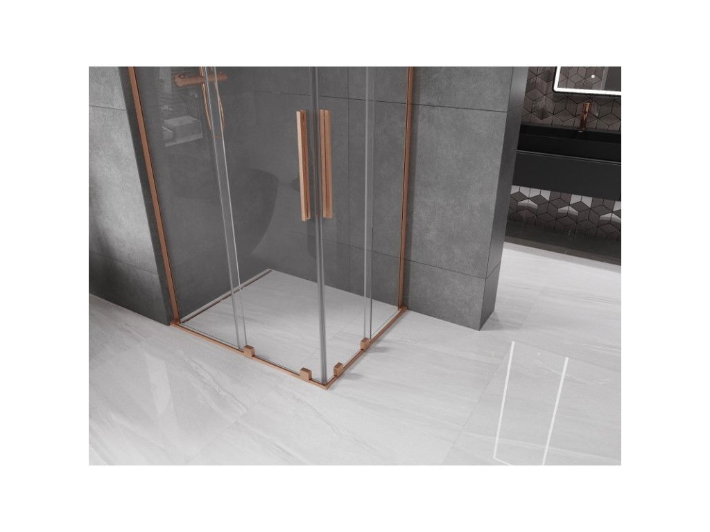 Mexen Velar L Duo posuvný sprchový kút 100 x 90 cm, transparentný, brúsená meď - 871-100-090-02-03-65