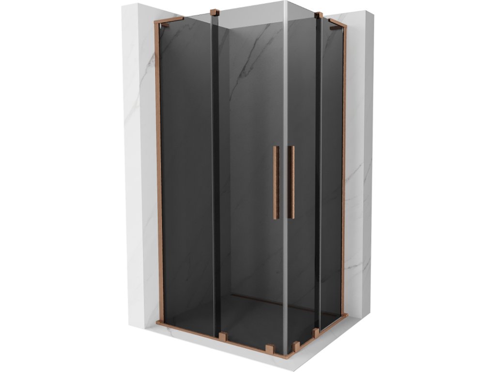 Mexen Velar L Duo posuvný sprchový kút 90 x 80 cm, grafit, brúsená meď - 871-090-080-02-43-65