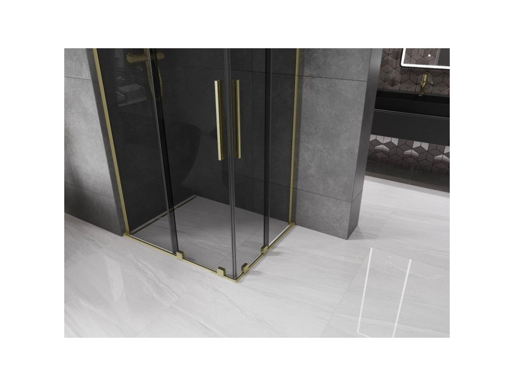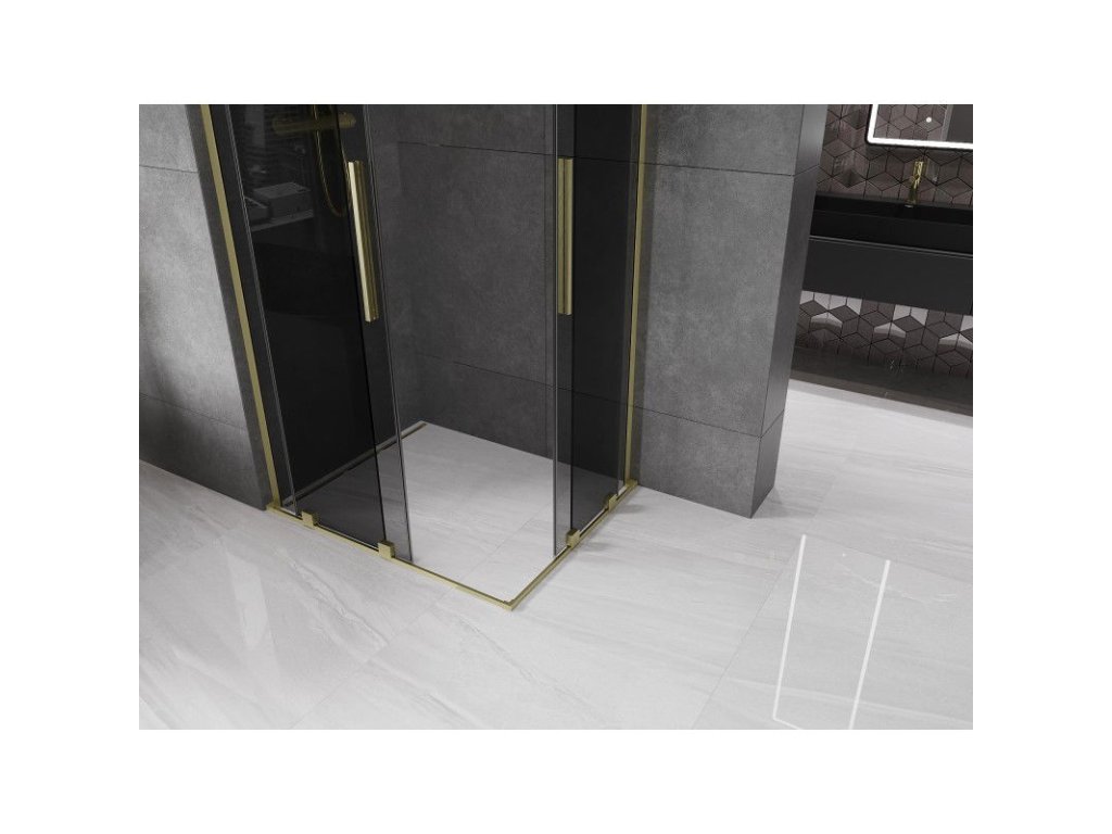 Mexen Velar L Duo posuvný sprchový kút 90 x 80 cm, grafit, zlatý kartáč - 871-090-080-02-43-55