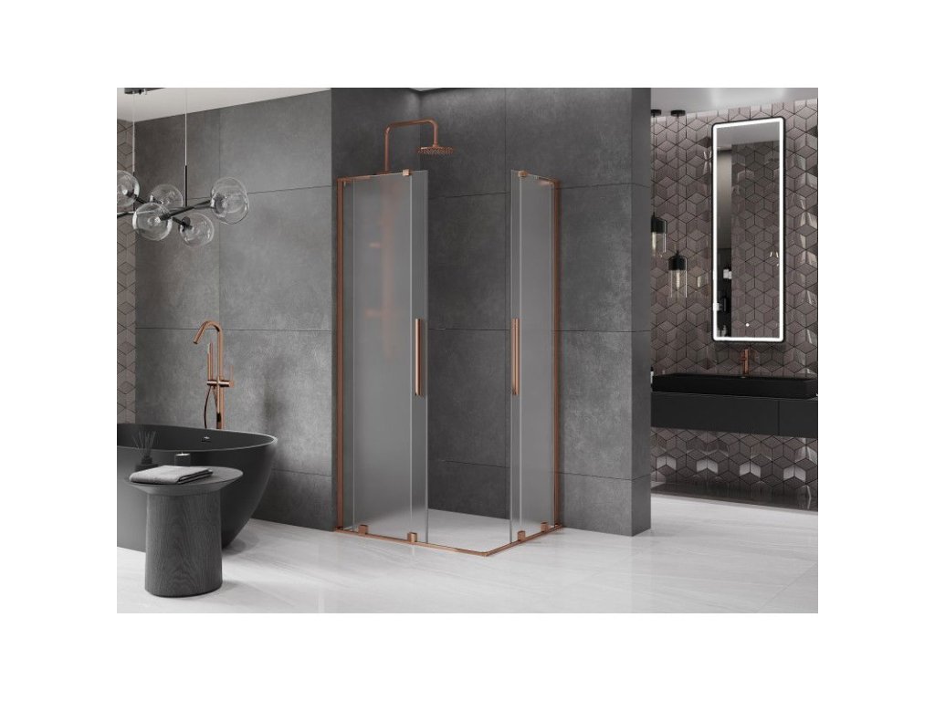 Mexen Velar L Duo posuvný sprchový kút 90 x 80 cm, matný, ružové zlato - 871-090-080-02-33-60