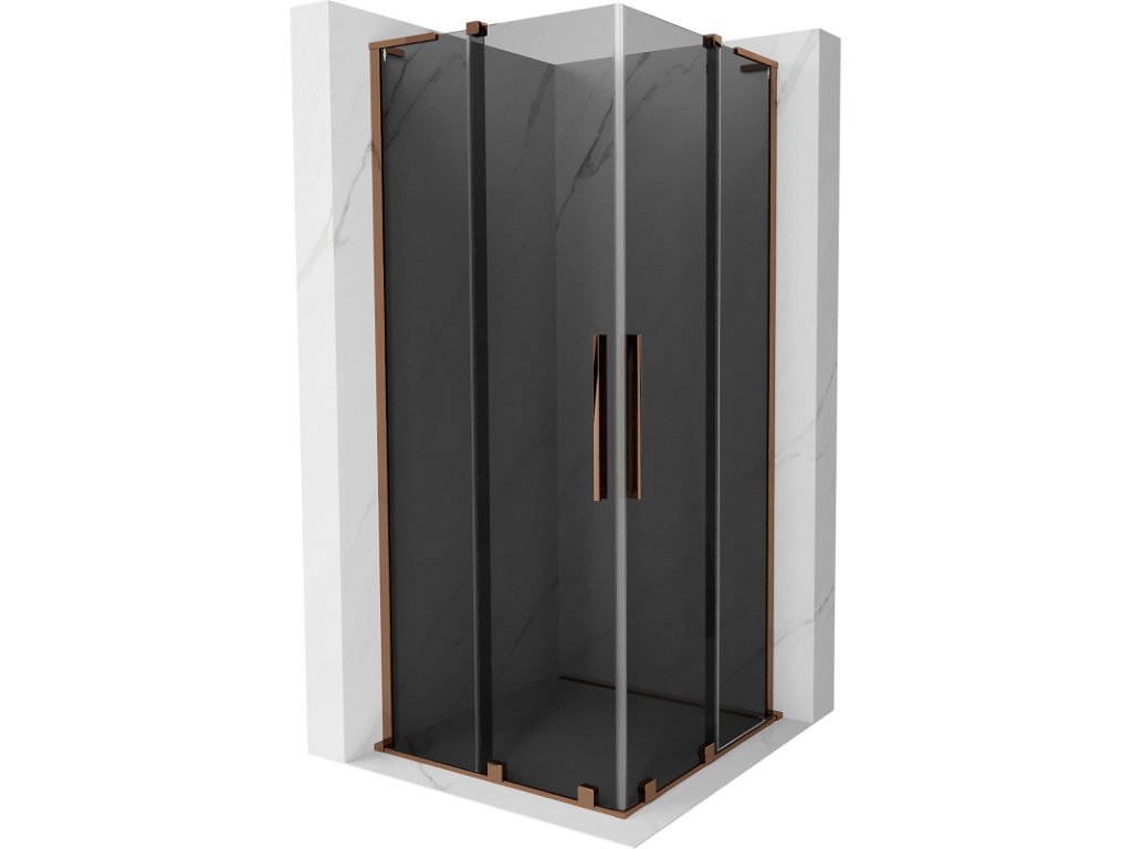 Mexen Velar L Duo posuvný sprchový kút 90 x 90 cm, grafit, ružové zlato - 871-090-090-02-43-60