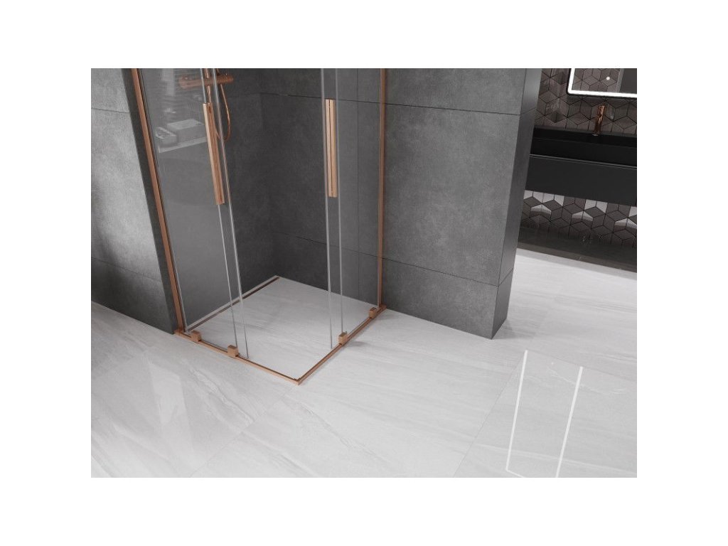 Mexen Velar L Duo posuvný sprchový kút 90 x 90 cm, transparentný, brúsená meď - 871-090-090-02-03-65
