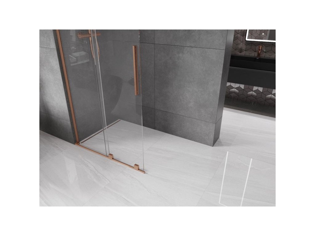 Mexen Velar L predlžovacia sprchová stena 120 x 200 cm, priehľadná 8 mm, brúsená meď - 871-120-003-03-65