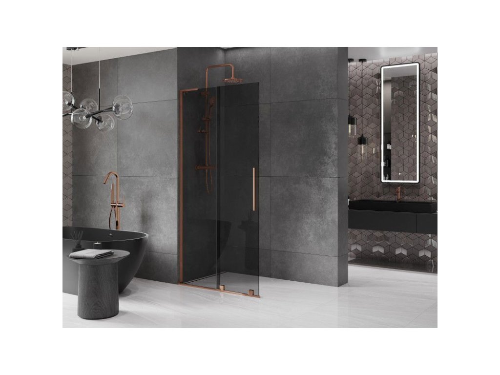 Mexen Velar L sprchová stena 90 x 200 cm, grafit 8 mm, ružové zlato - 871-090-003-43-60