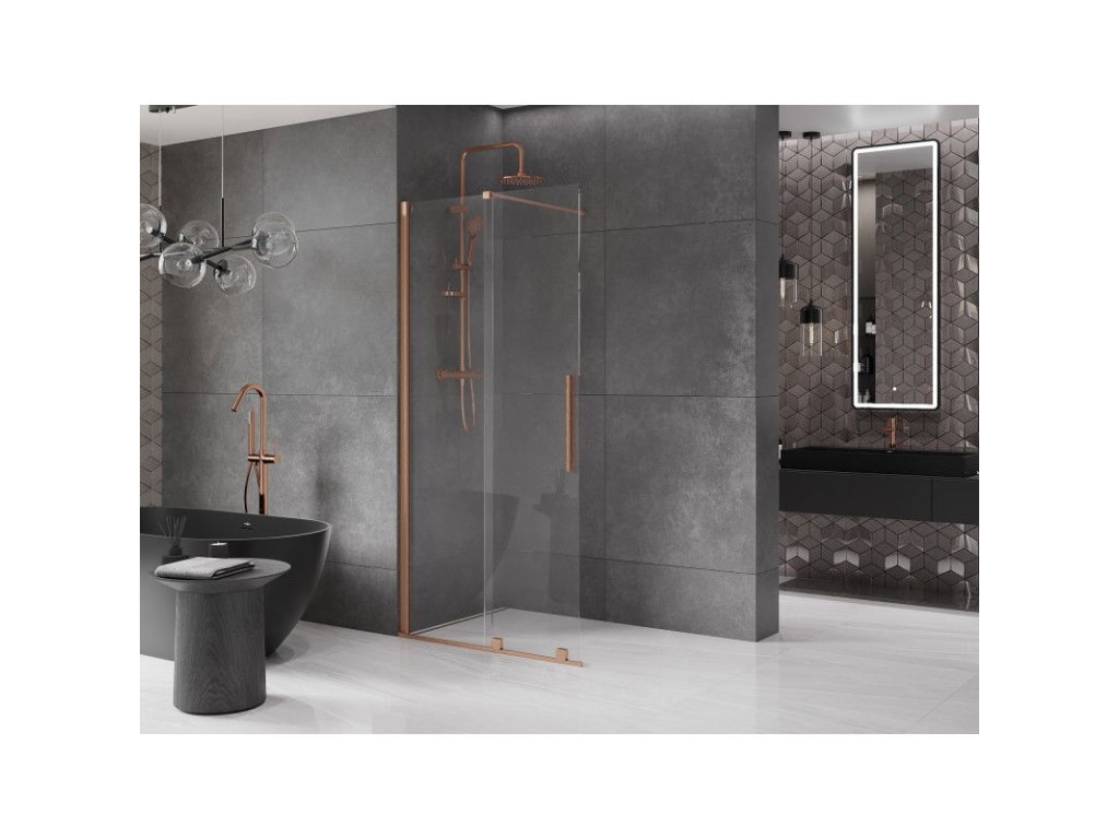 Mexen Velar predlžovacia sprchová stena 120 x 200 cm, priehľadná 8 mm, brúsená meď - 871-120-000-03-65