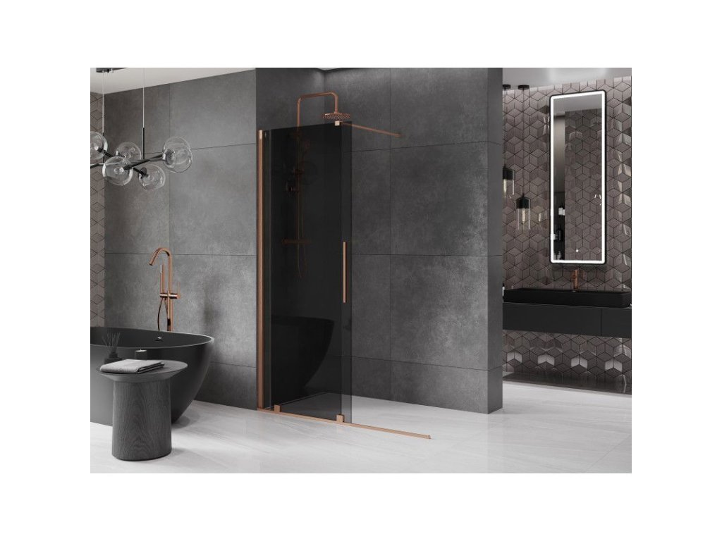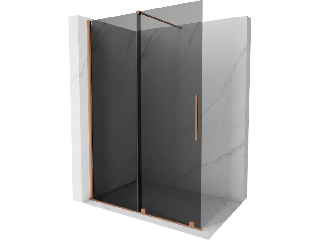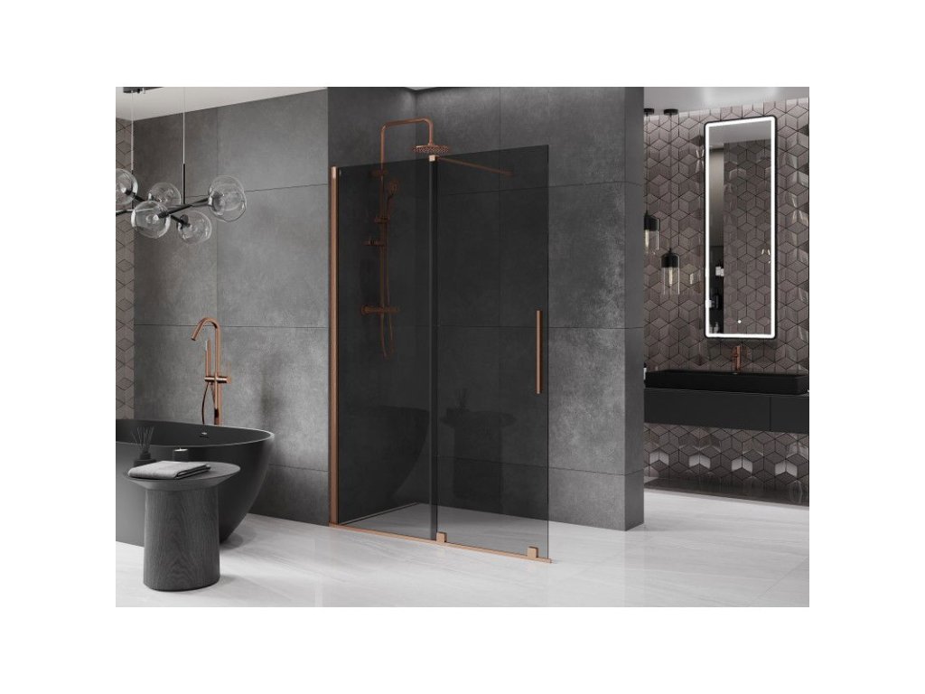 Mexen Velar predlžovacia sprchová stena 140 x 200 cm, grafit 8 mm, brúsená meď - 871-140-000-43-65