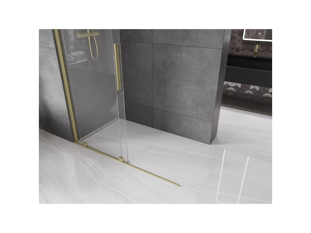 Mexen Velar predlžovacia sprchová stena 140 x 200 cm, priehľadná 8 mm, zlatý kartáč - 871-140-000-03-55