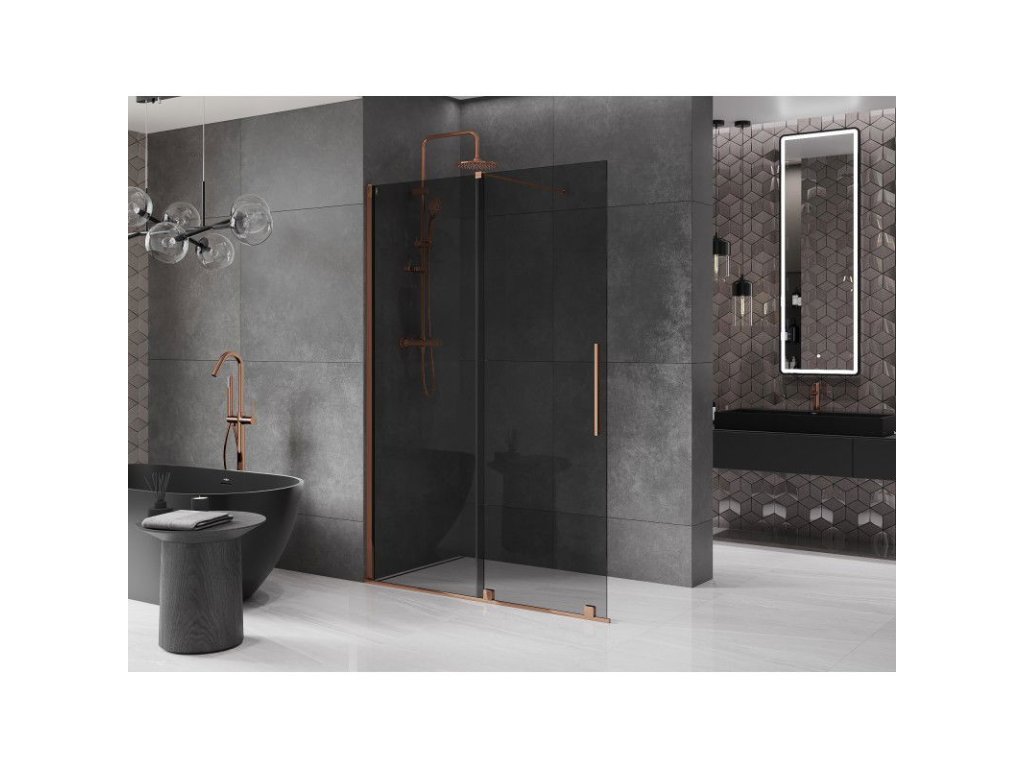 Mexen Velar sprchová stena 130 x 200 cm, grafit 8 mm, ružové zlato - 871-130-000-43-60
