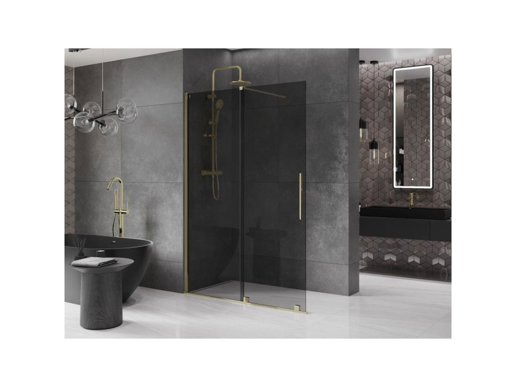Mexen Velar sprchová stena 140 x 200 cm, grafit 8 mm, zlatá - 871-140-000-43-50