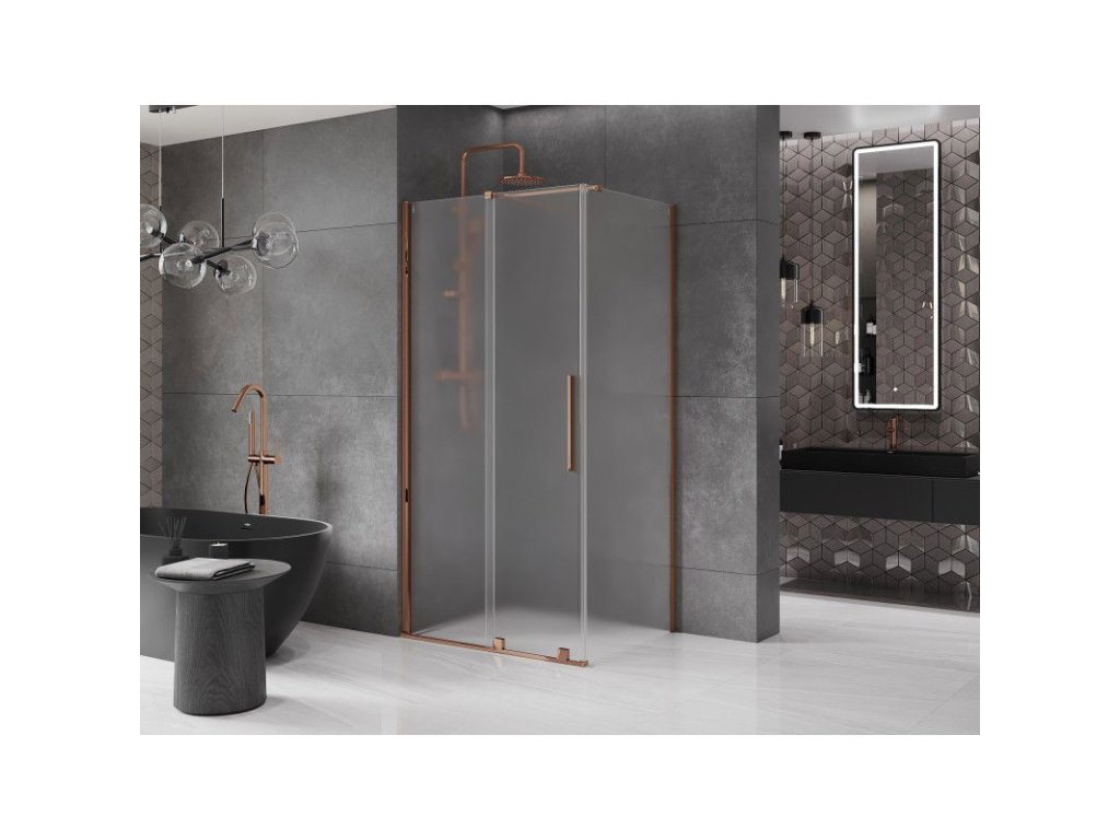 Mexen Velar výsuvný sprchový kút 90 x 110 cm, matný, ružové zlato - 871-090-110-31-55