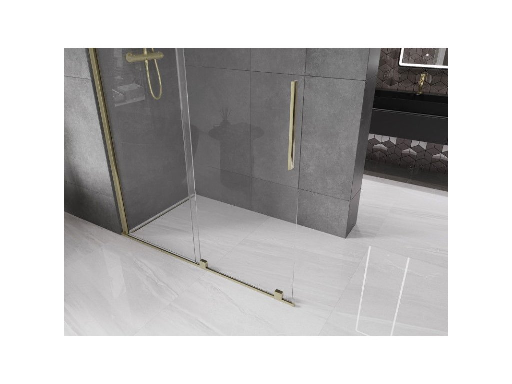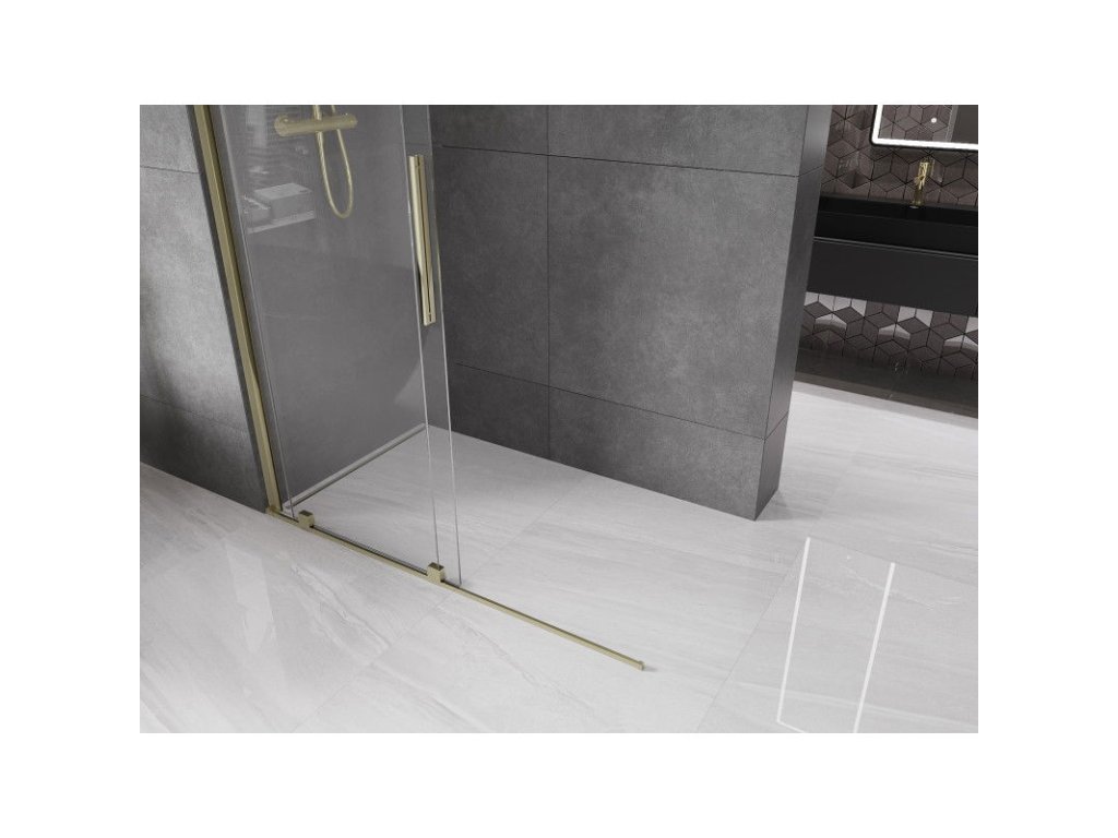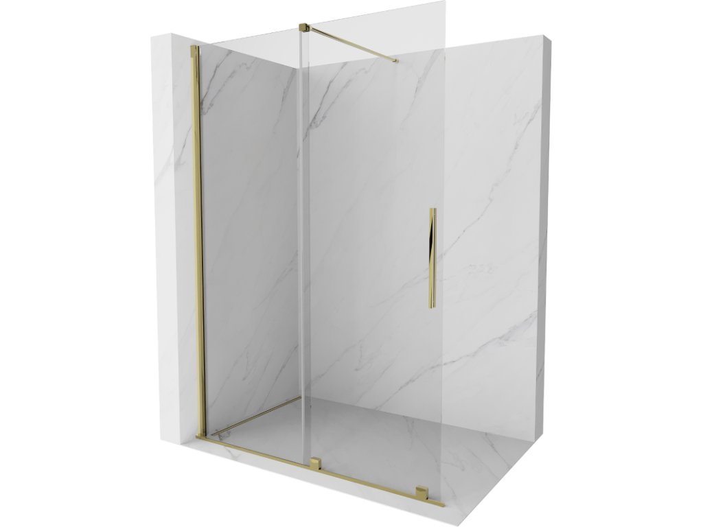 Mexen Velar zasúvacia sprchová stena 130 x 200 cm, priehľadná 8 mm, zlatá - 871-130-000-03-50