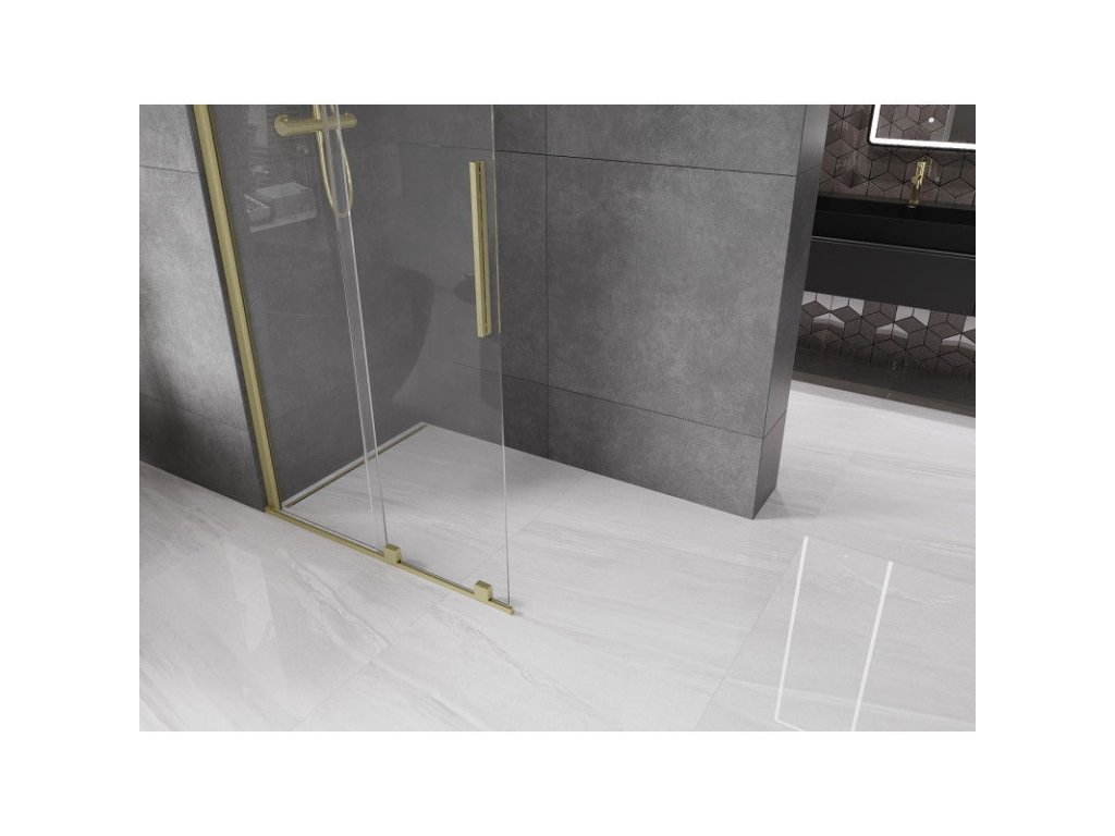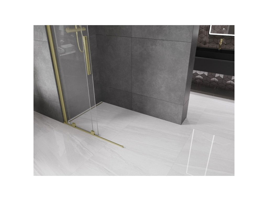 Mexen Velar zasúvacia sprchová stena 90 x 200 cm, priehľadná 8 mm, zlatý kartáč - 871-090-000-03-55