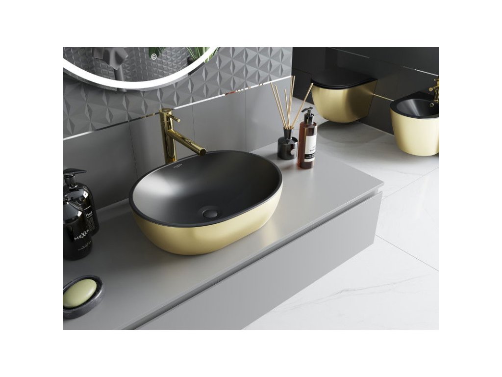 Mexen Viki umývadlo na dosku 48 x 35 cm, čierna matná/zlatá - 21054876