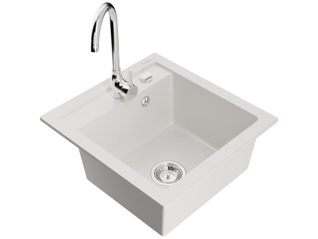 Mexen Vito drez granitový 1-komorový + batéria Telma, biely - 6503-20-670200-00