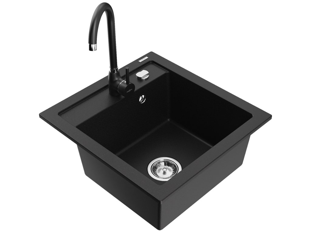 Mexen Vito drez granitový 1-komorový + batéria Telma, čierny - 6503-77-670200-70