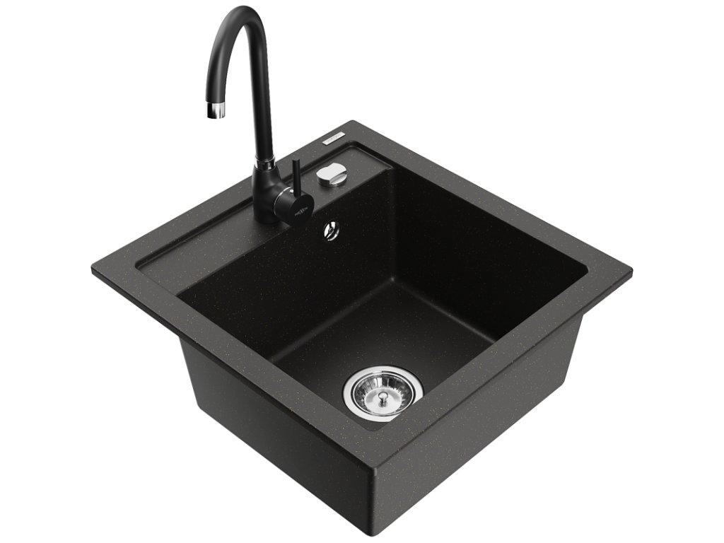 Mexen Vito drez granitový 1-komorový + batéria Telma, čierny/zlatá metalíza - 6503-75-670200-70