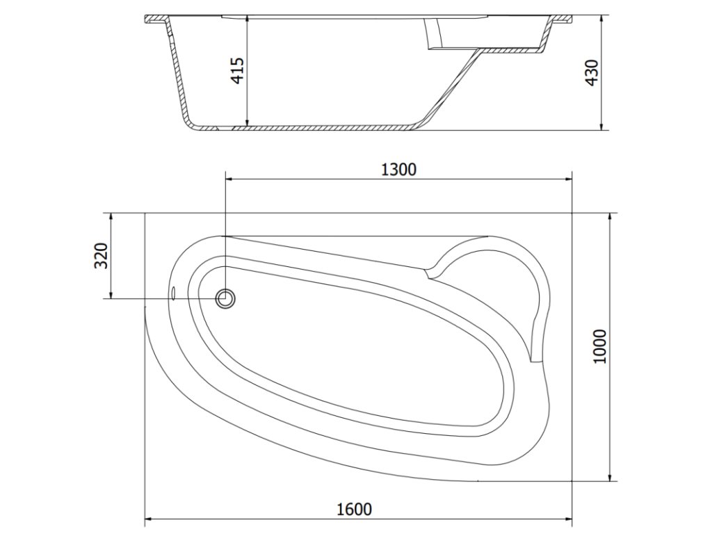 Mexen Westa pravá rohová vaňa 160 x 100 cm, biela - 560116010002