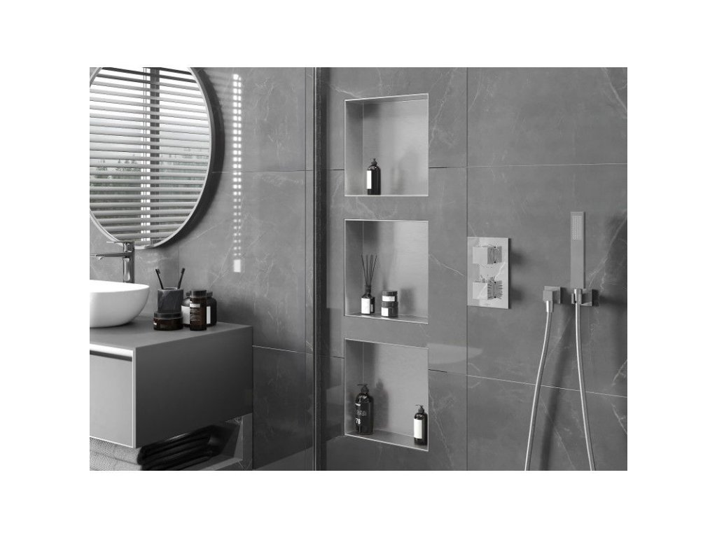 Mexen X-Wall-NR zapustená polica bez príruby 30 x 30 cm, inox - 1911303010