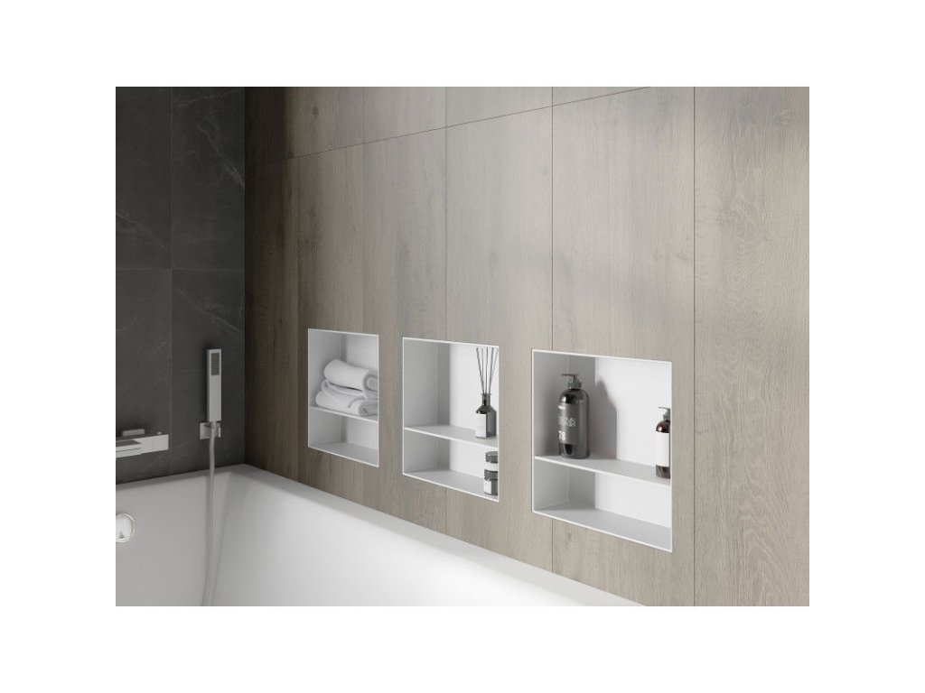 Mexen X-Wall-NR zapustená polica bez príruby s policou 30 x 30 cm, biela - 1921303010S