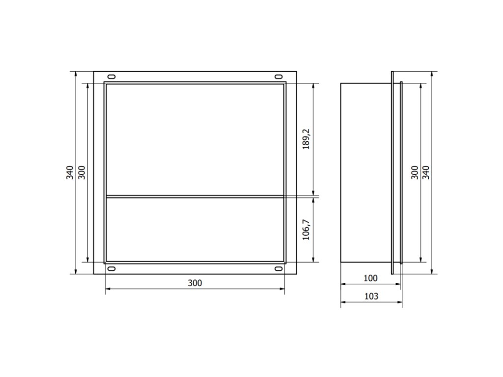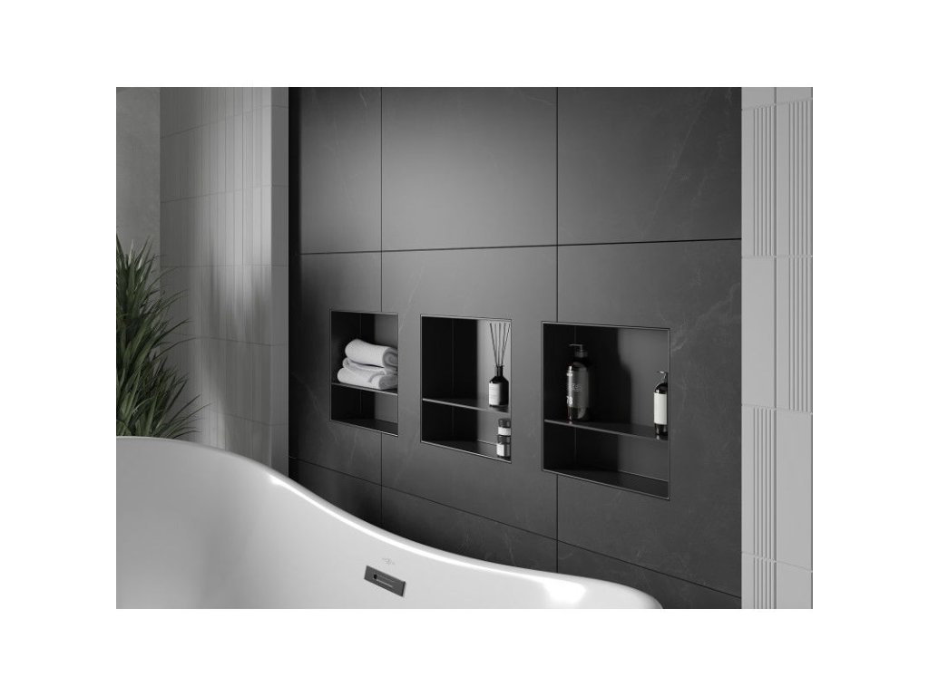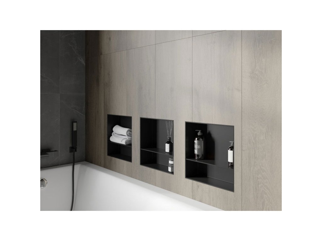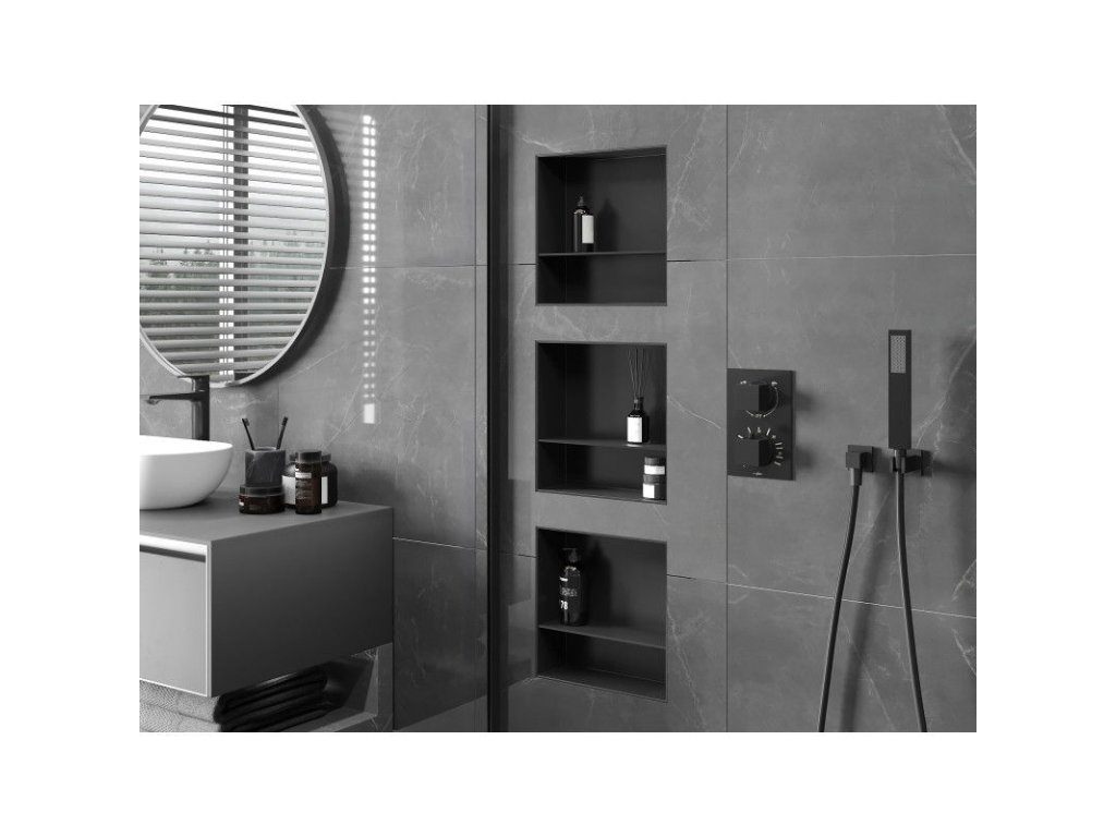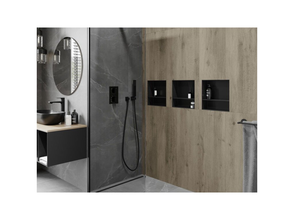 Mexen X-Wall-NR zapustená polica bez príruby s policou 30 x 30 cm, čierna - 1971303010S