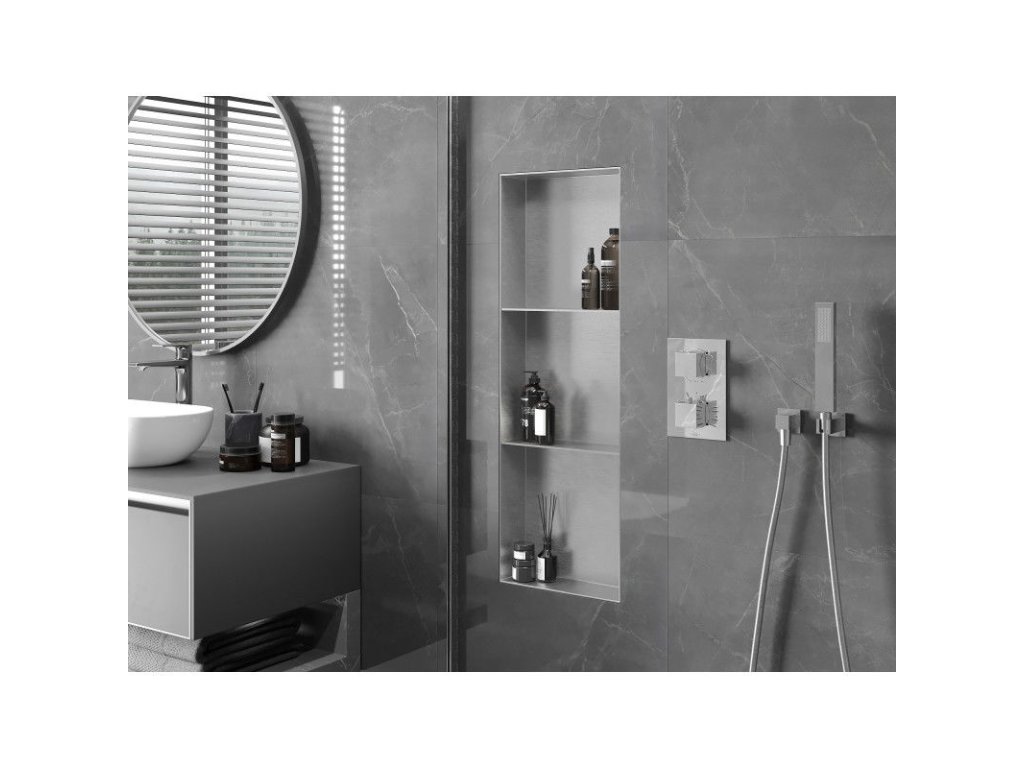 Mexen X-Wall-NR zapustená polica bez príruby s policou 90 x 30 cm, inox - 1911903010S
