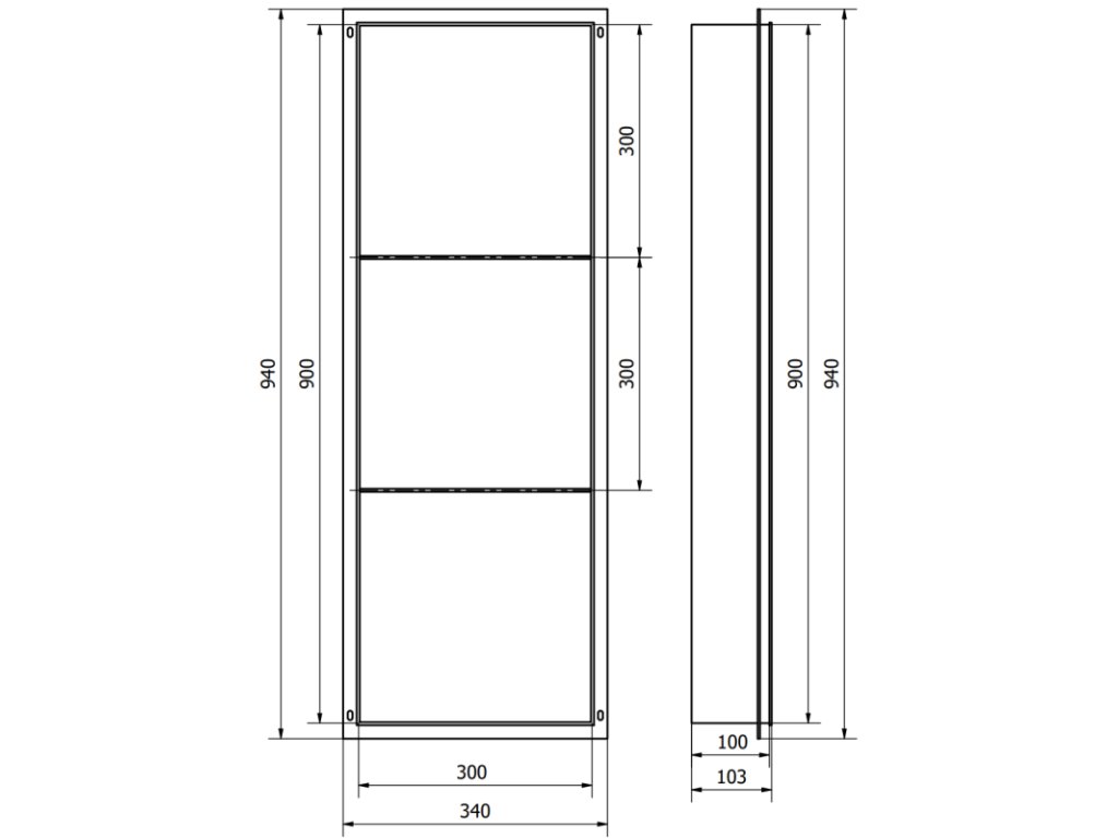 Mexen X-Wall-NR zapustená polica bez príruby s policou 90 x 30 cm, zlatá - 1951903010S