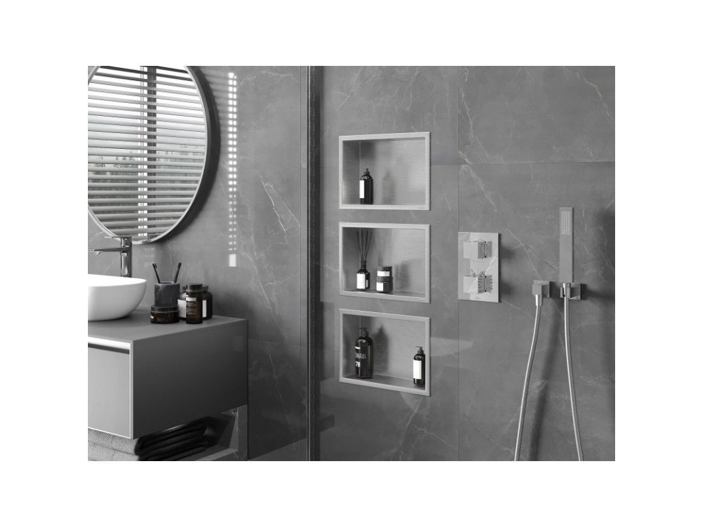 Technické údaje: Materiál: nerezová oceľ AISI 304 Šírka: 30 x 20 cm Montážna hĺbka: 30 cm: hĺbka: 10 cm Povrchová úprava: Inox Na inštaláciu do steny Univerzálne použitie Odolný voči zmatneniu a koróziiDodatočné parametre
