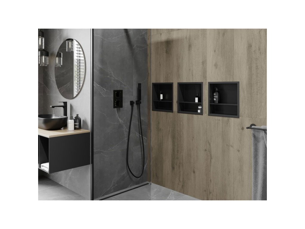 Mexen X-Wall-R výsuvná polica s prírubou a policou 30 x 30 cm, čierna - 1970303010S