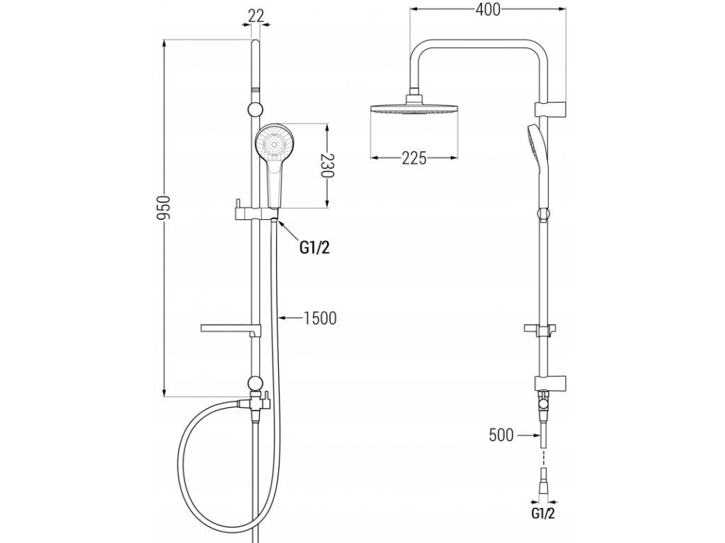 \nVeľkosť dažďovej sprchy: ø225 mm