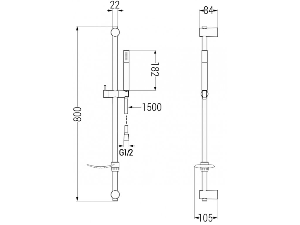 výška batérie ručnej sprchovej hlavice: 182 mm