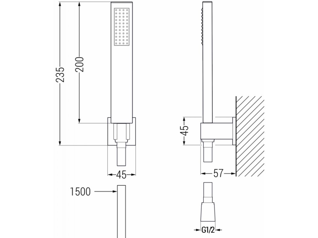 výška ručnej sprchovej hlavice: 200 mm