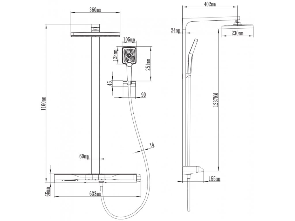 \nVeľkosť dažďovej sprchy: 230 x 360 mm