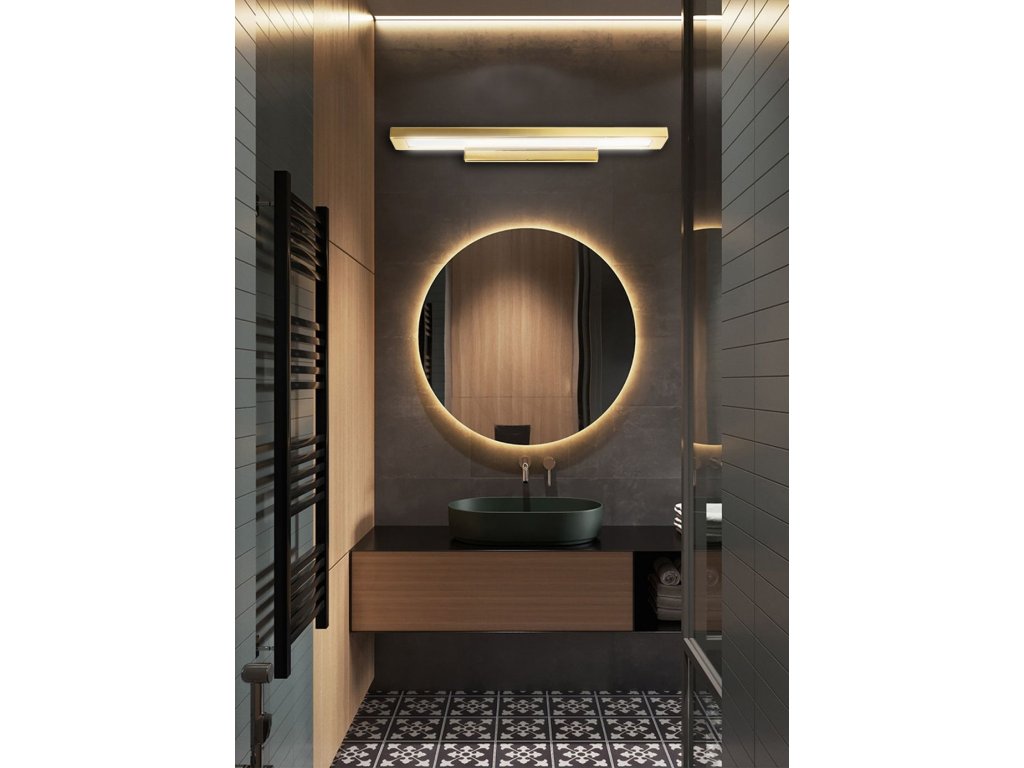 Moderné, nadčasové a veľmi elegantné nástenné ľad svietidlo, ktoré sa dokonale hodí ako osvetlenie kúpeľňovej zrkadlovej skrinky, obchodných nákladov alebo v kaderníckych salónoch. Svetlo bude skvele fungovať aj ako osvetlenie obrazov. Prevedenie v zlatom laku dodáva svetlu dokonalý design pre Vašu kúpeľňu.Dodatočné parametre