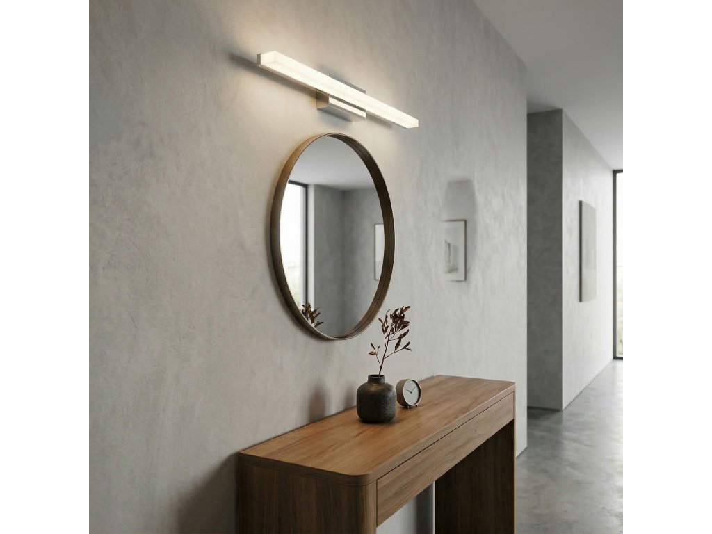 Moderné nástenné LED svietidlo s minimalistickým podlhovastým tvarom je elegantnou voľbou do kúpeľne, predsiene, spálne alebo nad zrkadlo. Štíhla konštrukcia v kombinácii s mliečnym tienidlom zaisťuje estetický vzhled a rovnomerne rozptýlené svetlo. Ide o funkčné svietidlo, ktoré dokonale zapadá do moderných, minimalistických a elegantných interiérov.Dodatočné parametre