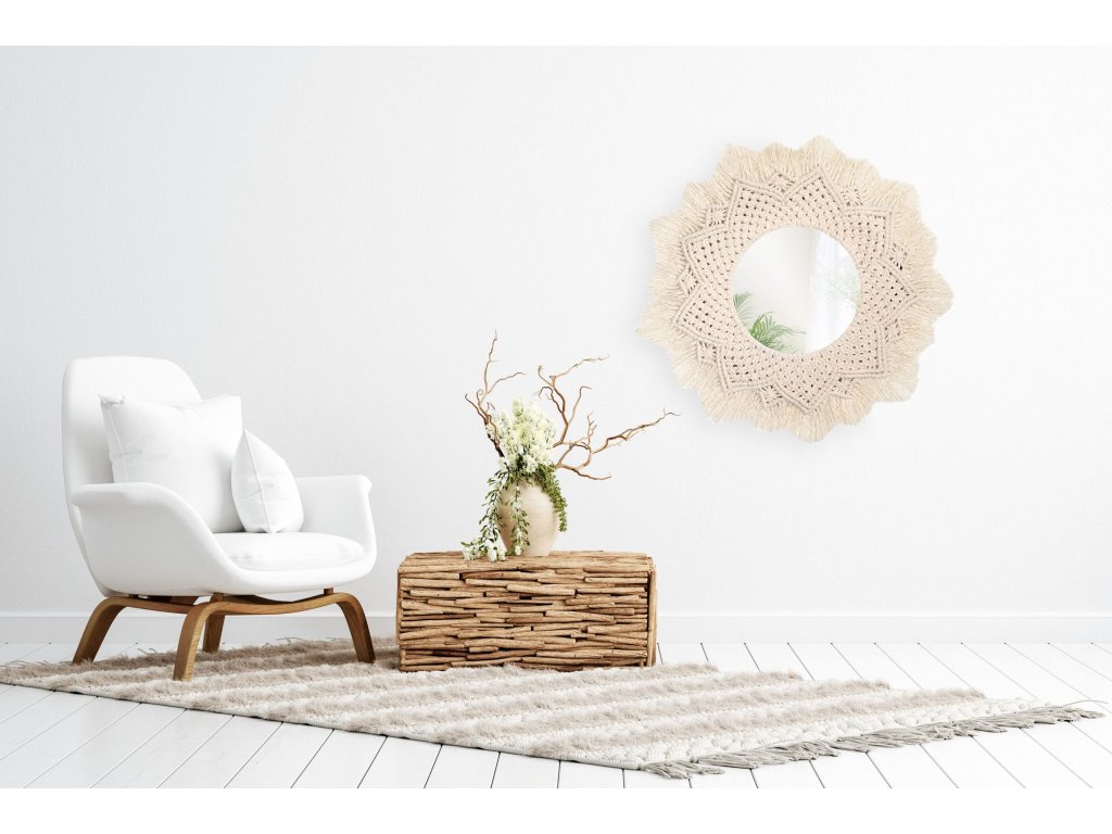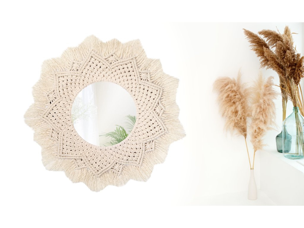 Nezabudnite pred zavesením vyčesať strapce Zrkadlo je vyrobené z kvalitných prírodných vlákien, ktoré mu dodávajú krásnu a jedinečnú štruktúru. Každý kus má svoj vlastný jedinečný charakter. Perfektne sa hodí do každej miestnosti, obývačky, kúpeľne, kuchyne, haly, na terasu alebo do altánku. Kdekoľvek, kde snívate o jedinečnom boho štýle. Ručne tkaný rám zrkadla ponúka nielen štýlový spôsob, ako ozdobiť steny a vniesť do interiéru jedinečnosť, ale zároveň ozdobí miestnosť krásnou kombináciou výrazných farieb a tradičného remeselného spracovania.Dodatočné parametre