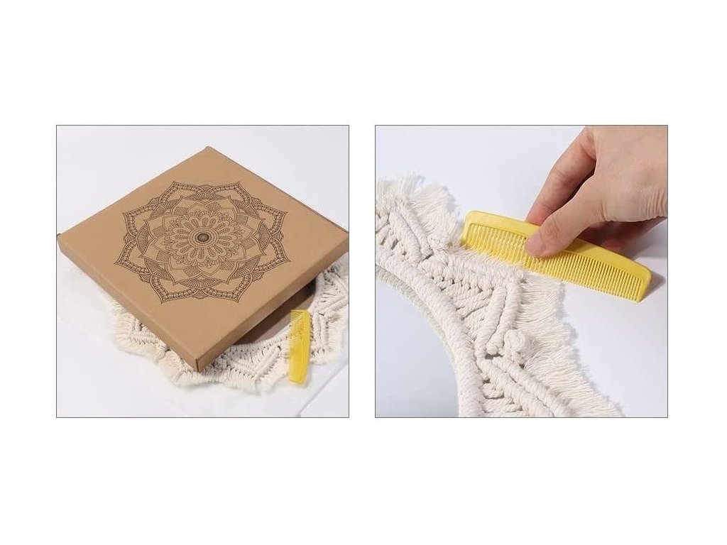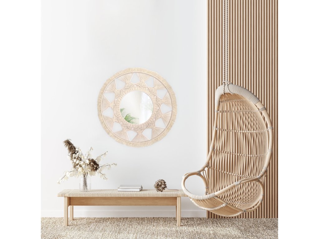 Nezabudnite pred zavesením vyčesať strapce Zrkadlo je vyrobené z kvalitných prírodných vlákien, ktoré mu dodávajú krásnu a jedinečnú štruktúru. Každý kus má svoj vlastný jedinečný charakter. Perfektne sa hodí do každej miestnosti, obývačky, kúpeľne, kuchyne, haly, na terasu alebo do altánku. Kdekoľvek, kde snívate o jedinečnom boho štýle. Ručne tkaný rám zrkadla ponúka nielen štýlový spôsob, ako ozdobiť steny a vniesť do interiéru jedinečnosť, ale zároveň ozdobí miestnosť krásnou kombináciou výrazných farieb a tradičného remeselného spracovania.Dodatočné parametre