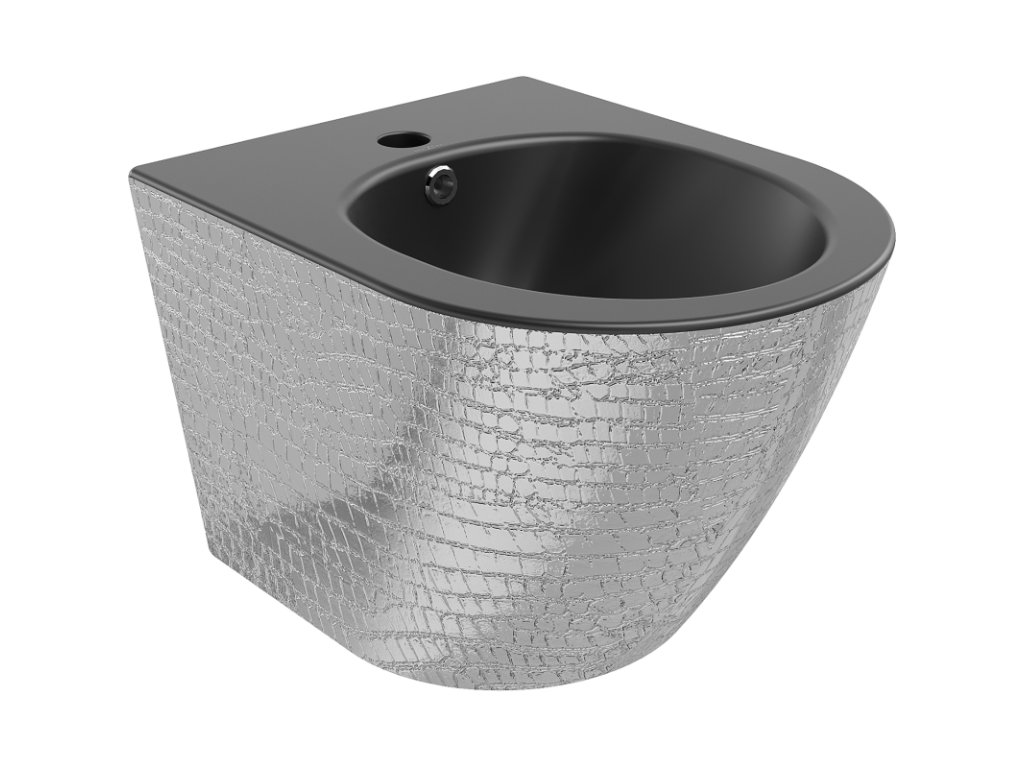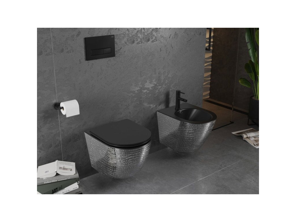 Nástenný bidet Mexen Lena, čierny matný/strieborný vzor šupín - 35224872