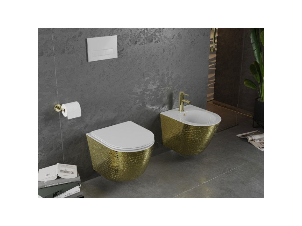 Nástenný bidet Mexen Lena, vzor biela/zlatá škála - 35224808