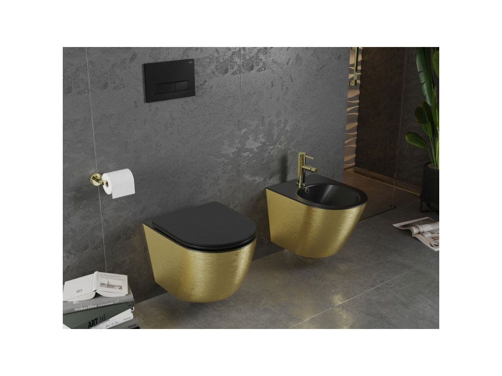 Nástenný bidet Mexen Lena, vzor čierny mat/zlatá linka - 35224877
