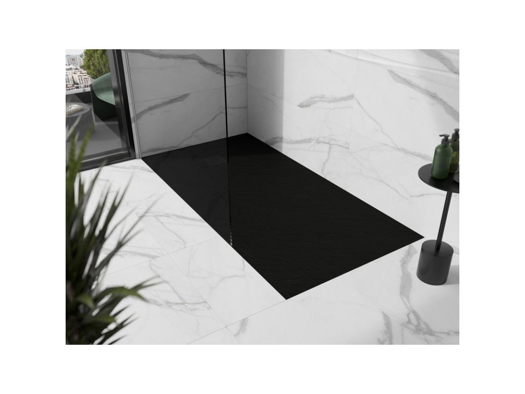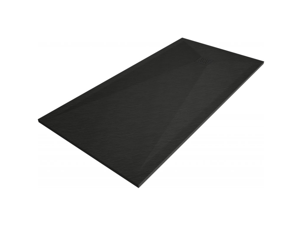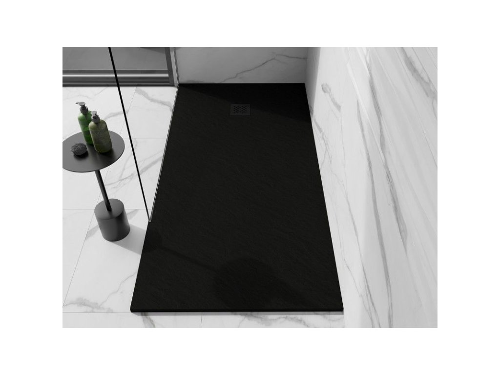 Obdĺžniková kompozitná sprchová vanička Mexen Stone+ 160 x 100 cm, čierna, čierna mriežka - 44701016-B