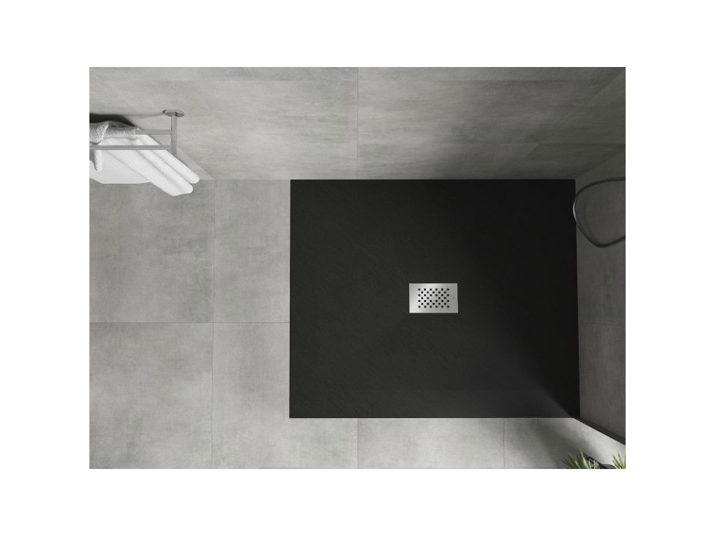 Obdĺžniková sprchová vanička Mexen Hugo SMC 120 x 100 cm, čierna, inoxová mriežka - 42701012-X