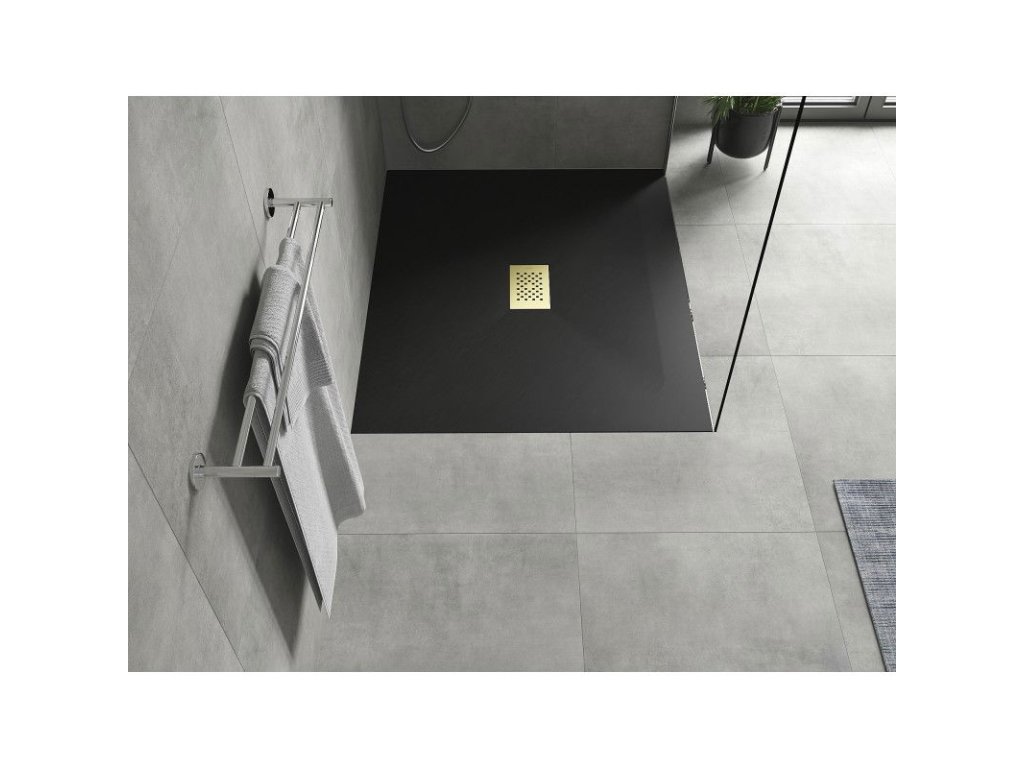 Obdĺžniková sprchová vanička Mexen Hugo SMC 120 x 100 cm, čierna, zlatá mriežka - 42701012-G