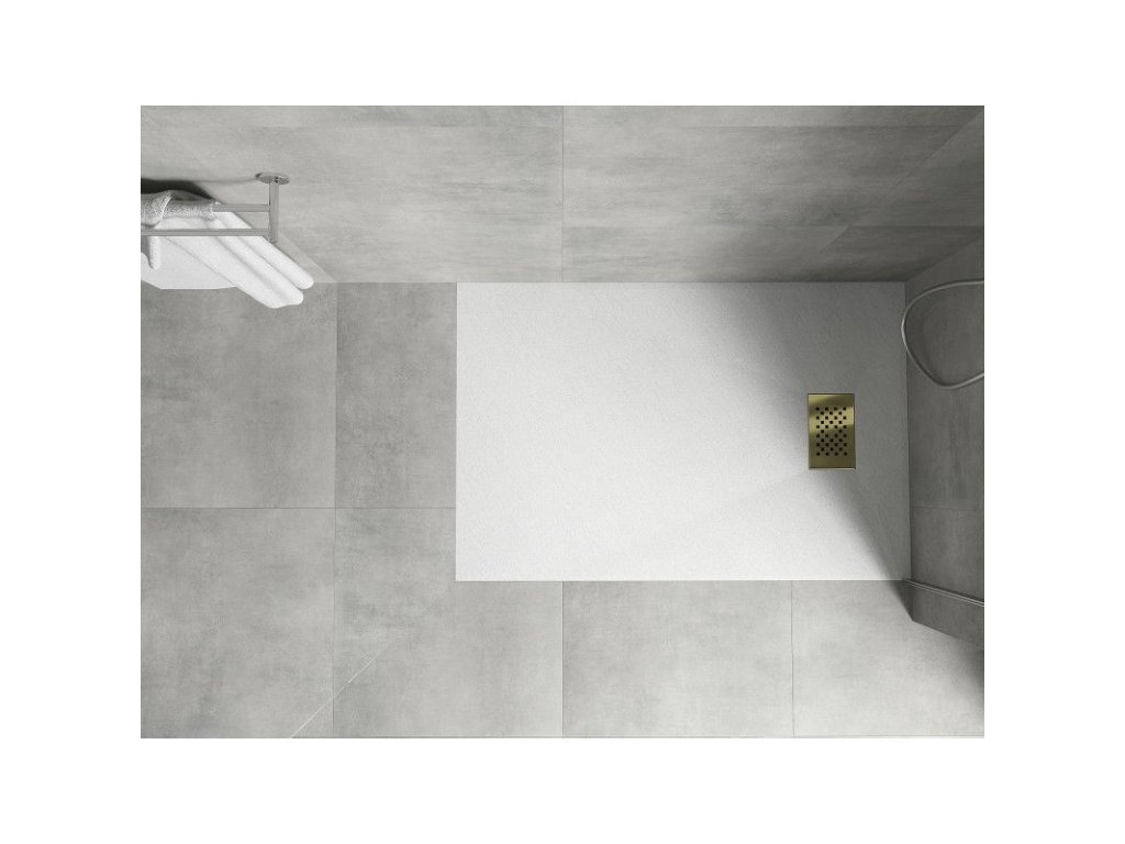 Obdĺžniková sprchová vanička Mexen Hugo SMC 130 x 70 cm, biela, zlatá mriežka - 42107013-G