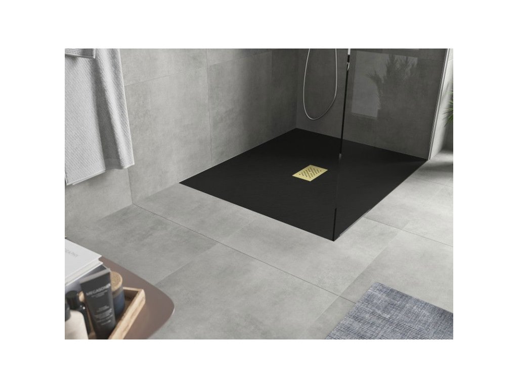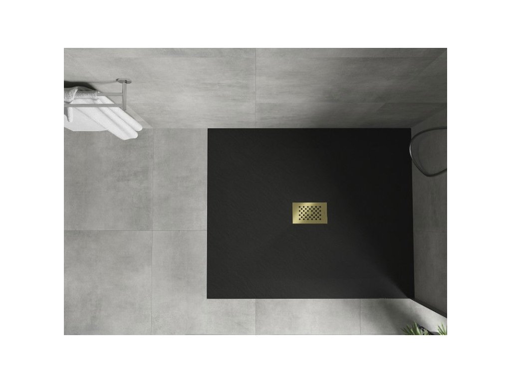Obdĺžniková sprchová vanička Mexen Hugo SMC 140 x 100 cm, čierna, zlatá mriežka - 42701014-G
