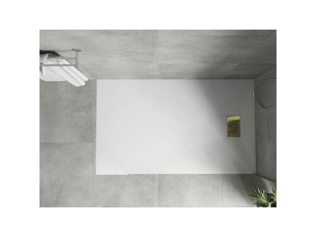 Obdĺžniková sprchová vanička Mexen Hugo SMC 140 x 80 cm, biela, zlatá mriežka - 42108014-G